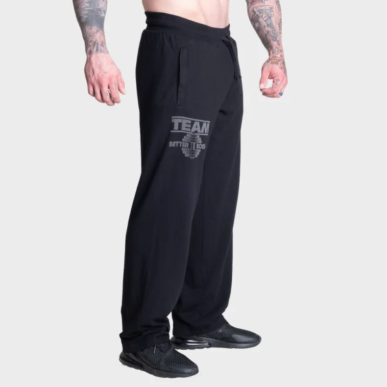 På disse Better Bodies joggebuksene tok vi bort den ytre sømmen for å gjøre dem mer komfortable. Disse buksene passer til alle aspekter av treningslivsstilen din. Glidelåslommer, Team Better Bodies-trykk og en elastisk linning med justerbar snøring er alt du trenger i en joggebukse, enten du trener eller forbereder måltider på kjøkkenet.